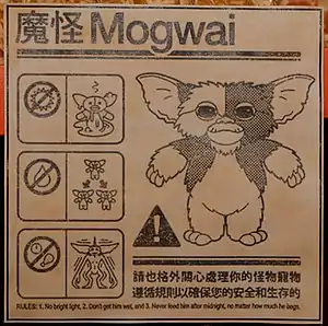 Mogwai est la translittération du mot cantonais 魔怪 (mo gwai) (en mandarin : 魔鬼 ; pinyin :móguǐ) qui signifie « fantôme », « mauvais esprit », « diable » ou « Démon ».