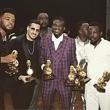 Moh Green en compagnie d'Iba One, avec les trophées des All Africa Music Awards