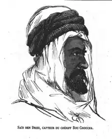Le 4 mars 1874, Said Ben Driss lève une nouvelle colonne de 37 cavaliers et 260 méharistes pour rechercher le chérif Bouchoucha[19]. La bataille a lieu le 13 mars 1874 au sud-ouest de In-Salah, à la suite de laquelle Bouchoucha est capturé et envoyé sous escorte à Ouargla[20].