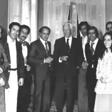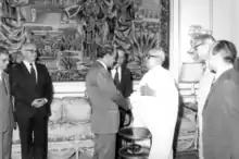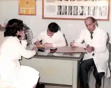 El Kassab discutant avec un patient handicapé lors de l'ouverture du Centre national d'orthopédie de Ksar Saïd en 1971.