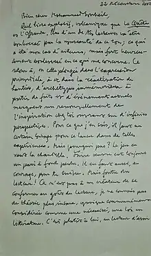 Outre les trois œuvres citées plus haut et parues entre 1984 et 1989, l’écrivain passera à un autre registre de réflexion à la suite d’un long et profond échange épistolaire avec Mohammed Dib, installé à Paris depuis 1959, à propos de son roman Les Terrasses d’Orsol[11]où il évoque une énigmatique fosse, au travers de laquelle il expose les avatars de l’exil et la dissolution effrayante du moi. «Le roman donne parfois l'impression d'un rêve ou d'un délire scrutant les confins d'une folie à fleur de peau[12].»