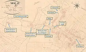 En 1614, Molay, avec 68 ménages, appartenait à M. le comte de Champlitte, au marquis de Vielpont et à M. de Lassaut[24].