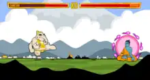 Les combattants jouables sont Dieu, Jésus, Bouddha, Ganesh, Le Bouddha Riant, et Mahomet, ainsi qu'une entité extraterrestre contrôlée par l'ordinateur, Xenu. De temps en temps, on voit apparaître le Flying Spaghetti Monster au troisième plan.
