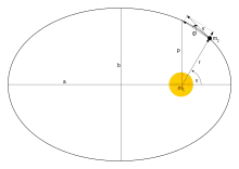 qui est l'équation polaire d'une conique avec le demi-paramètre et l'excentricité . Ceci démontre la première loi de Kepler, en mots :