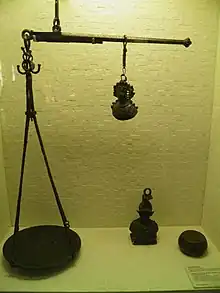Une balance romaine illustre parfaitement ce qu'est l'égalité des moments. Lors d'une pesée, les deux poids suspendus sont sensiblement perpendiculaires au fléau, et donc le « pouvoir de basculement » des deux poids sera équilibré si le produit du poids par la distance est égal dans les deux cas. D'un côté, la distance est fixe mais le poids est inconnu, de l'autre le poids est fixe mais la distance est variable, et la balance permet donc de lire le poids inconnu sur la gradation de longueur portée par le fléau.