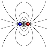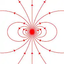 Le champ magnétique d'un dipôle idéal est représenté ci-contre.