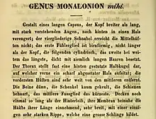 Description du genre Monalonion par Herrich-Schaeffer dans Die Wanzenartigen Insecten: getreu nach der Natur abgebildet und beschrieben en 1850.
