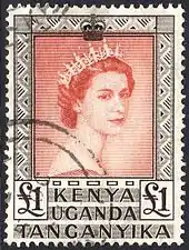 Timbre de Kenya-Uganda-Tanganyika (KUT) à l'effigie de la reine Élisabeth II.