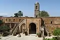 L'église est construite dans le style architectural cruciforme byzantin avec trois coupoles. L'église principale est flanquée de deux chapelles plus petites en forme de dôme, dont l'une est dédiée à la source de vie (Zoodochos Pigi) et l'autre à Saint Jean le théologien[4]. L'église principale est dédiée à la Sainte Trinité et l'église a un narthex à l'avant placé à angle droit par rapport à l'allée principale. Il y a deux grandes colonnes de style dorique et une plus petite colonne de style corinthien de chaque côté de l'entrée principale. La façade de l'église a deux colonnes de style ionien et corinthien et porte une inscription en grec, qui est datée de 1631. La porte de la cave du monastère est datée de 1613. Au XIXe siècle, le monastère a été créé comme une importante école de théologie à partir de 1833[1] et le beffroi date de 1864. Le monastère a ensuite été considérablement endommagé lors des conflits avec les Turcs et en 1892, un séminaire y fut créé.