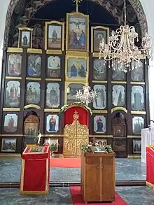 À l'intérieur, la vieille iconostase a été peinte en 1832 par Janja Moler ; elle a été remplacée en 1929-1931 par une nouvelle iconostase peinte par Nestor Aleksijević et ses fils. L'église abrite des livres et des objets liturgiques, dont un calice en or offert en 1844 par Vujica Vulićević en repentance de ses péchés[2].