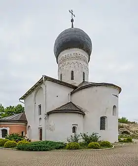 Le sanctuaire principal du monastère est l'église de la Nativité-de-la-Vierge, bâtie en 1311 à l'image de l'église de la Transfiguration-du-Sauveur du monastère de la Miroja. En 1313, elle est peinte à fresque. L'ensemble de ces fresques est un magnifique exemple de l'école artistique de Pskov et est le seul à avoir été conservé de son époque (début du XIVe siècle).