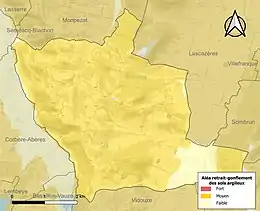 Le retrait-gonflement des sols argileux est susceptible d'engendrer des dommages importants aux bâtiments en cas d’alternance de périodes de sécheresse et de pluie[32]. 92,4 % de la superficie communale est en aléa moyen ou fort (59 % au niveau départemental et 48,5 % au niveau national)[Carte 5]. Depuis le , en application de la loi ELAN, différentes contraintes s'imposent aux vendeurs, maîtres d'ouvrages ou constructeurs de biens situés dans une zone classée en aléa moyen ou fort[Note 6],[33].