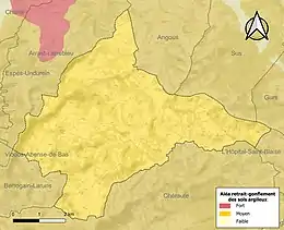 Le retrait-gonflement des sols argileux est susceptible d'engendrer des dommages importants aux bâtiments en cas d’alternance de périodes de sécheresse et de pluie[40]. La totalité de la commune est en aléa moyen ou fort (59 % au niveau départemental et 48,5 % au niveau national)[Carte 5]. Depuis le , en application de la loi ELAN, différentes contraintes s'imposent aux vendeurs, maîtres d'ouvrages ou constructeurs de biens situés dans une zone classée en aléa moyen ou fort[Note 8],[41].