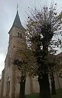 - L'église Saint-Georges, en plan de croix date du XIIe siècle, elle est inscrite depuis 1903 à l'inventaire général du patrimoine culturel des monuments historiques. Ses modifications, aménagements et réhabilitations ont été pléthore jusqu’au 17 octobre 2020[22], date de l’inauguration de sa dernière restauration. Après un an de travaux, l'église paroissiale, en phase de laïcisation, vient de bénéficier de la restauration de sa toiture grâce à la Fondation du Patrimoine[23], les abords, les contreforts et les murs ont suivi avec le soutien des collectivités territoriales. L'intérieur de l'église dont l'autel date de 1960, dispose de trois sculptures remarquables[24] :