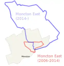 - (en) Cet article est partiellement ou en totalité issu de l’article de Wikipédia en anglais intitulé « Moncton East (electoral district » (voir la liste des auteurs).