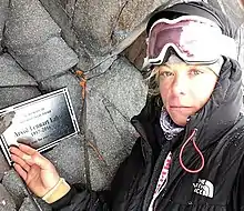 | 2011 | Puncak Jaya (4 884 m) | (Aussi appelée Pyramide Cartensz.) Hors saison, aucun hélicoptère n'est disponible pour la transporter au camp de base. Elle met 6 jours pour s'y rendre à pied dans des pluies torrentielles à travers la jungle. Au retour, en raison d'une guerre civile et de risques de violences, elle est forcée de traverser une zone minière et est séquestrée pendant 6 jours dans un conteneur[4],[11],[12]. |
