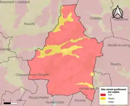 Le retrait-gonflement des sols argileux est susceptible d'engendrer des dommages importants aux bâtiments en cas d’alternance de périodes de sécheresse et de pluie. La totalité de la commune est en aléa moyen ou fort (90,2 % au niveau départemental et 48,5 % au niveau national). Sur les 1 627 bâtiments dénombrés sur la commune en 2019, 1626 sont en aléa moyen ou fort, soit 100 %, à comparer aux 91 % au niveau départemental et 54 % au niveau national. Une cartographie de l'exposition du territoire national au retrait gonflement des sols argileux est disponible sur le site du BRGM[25],[26].
