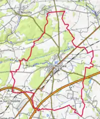 L'occupation des sols de la commune, telle qu'elle ressort de la base de données européenne d’occupation biophysique des sols Corine Land Cover (CLC), est marquée par l'importance des territoires agricoles (67,4 % en 2018), néanmoins en diminution par rapport à 1990 (69 %). La répartition détaillée en 2018 est la suivante : terres arables (59 %), forêts (26,6 %), zones urbanisées (4,8 %), prairies (4,7 %), zones agricoles hétérogènes (3,7 %), zones industrielles ou commerciales et réseaux de communication (1,2 %)[21]. L'évolution de l’occupation des sols de la commune et de ses infrastructures peut être observée sur les différentes représentations cartographiques du territoire : la carte de Cassini (XVIIIe siècle), la carte d'état-major (1820-1866) et les cartes ou photos aériennes de l'IGN pour la période actuelle (1950 à aujourd'hui)[Carte 1].