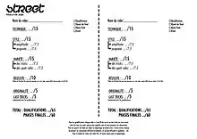 En France, c’est le 29 octobre 2006[23] qu’a lieu au skatepark de Nantes la première compétition de Street en championnat de France, elle est remportée par Romain Bouschbacher.