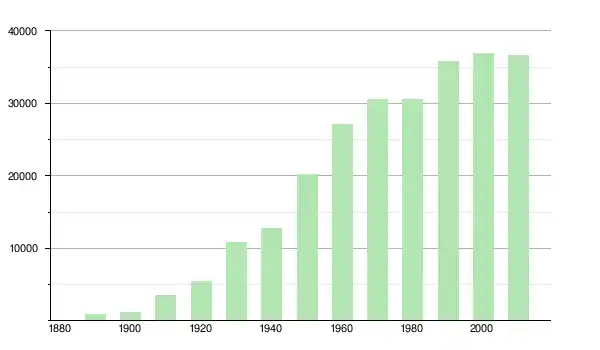 | 1960 | 27 079 | ▲ +34,15 % | |