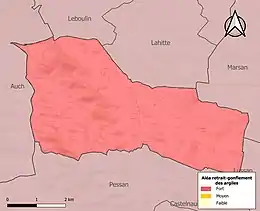 Le retrait-gonflement des sols argileux est susceptible d'engendrer des dommages importants aux bâtiments en cas d’alternance de périodes de sécheresse et de pluie. La totalité de la commune est en aléa moyen ou fort (94,5 % au niveau départemental et 48,5 % au niveau national). Sur les 225 bâtiments dénombrés sur la commune en 2019, 225 sont en aléa moyen ou fort, soit 100 %, à comparer aux 93 % au niveau départemental et 54 % au niveau national. Une cartographie de l'exposition du territoire national au retrait gonflement des sols argileux est disponible sur le site du BRGM[22],[Carte 3].