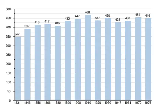 - Sources : INS, Rem. : 1831 jusqu'en 1970 = recensements, 1976 = nombre d'habitants au 31 décembre.