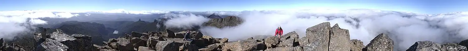 Vue du mont Anne et du mont Eliza depuis la Scott's Peak Dam Road. | |