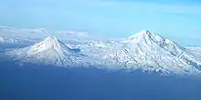 Le mont Ararat (en arménien Արարատ), Ağrı Dağı en turc, Çiyayê Agirî ou Shaxi en kurde, Kuh-e-Nuh (کوه نوح, « montagne de Noé ») en persan, ou encore Masis (Մասիս chez les Arméniens, Μασίς chez les Grecs pontiques et מעזיז (Maziz)[4] chez les Romaniotes) est avec 5 137 mètres d'altitude le sommet le plus élevé de Turquie. Situé sur le haut-plateau arménien, dans l'Est de la Turquie, il est à une trentaine de kilomètres des frontières avec l'Arménie et l'Iran.