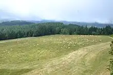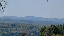 Le mont Bessou (à gauche) depuis la route des Hêtres (environ 2 km à l'ouest). | |