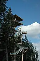 Faisant suite à un premier projet de tour en bois en 1969[15], une tour panoramique est construite au sommet du mont Bessou en 2005, en limite d'une prairie dont l'origine remonte à la tempête de décembre 1999 qui a déraciné une partie des conifères au sommet du mont, dégageant ainsi une large vue sur les environs. La tour est inaugurée le par Jean-Pierre Dupont, alors président du conseil général de la Corrèze, son vice-président, Georges Pérol, ainsi que Serge Vialle, maire de Meymac et François Bonnin, architecte responsable du projet.