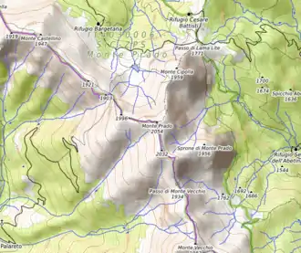 - (it) Cet article est partiellement ou en totalité issu de l’article de Wikipédia en italien intitulé « Monte Prado » (voir la liste des auteurs).