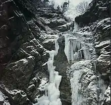 - Le pas de la Branche profite d'un endroit où la forêt rejoint dans un maigre couloir le haut de la falaise, les crêtes. Cet itinéraire est interdit par arrêté depuis 1986, mais le sentier reste tracé. Depuis qu'il n'est plus entretenu, la partie du sentier qui se trouve sous le passage de la falaise est fortement dégradée. En 2003, il existait une corde d'escalade, mise en place par des particuliers, en parallèle de la main courante d'origine, cette dernière étant partiellement descellée. En 2007, des scellements additionnels, de bonne qualité, sont venus renforcer les mains courantes de câbles. Ce pas est exposé et le chemin, qui ne présente pas de difficulté majeure, est impraticable par temps humide.
