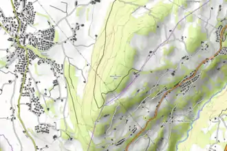 Vue du mont Vuarat, au centre de l'image depuis la tour relais du Mont Pèlerin. | |||