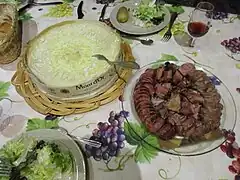| Accompagnement | Charcuterie, pomme de terre en robe des champs, vin blanc du vignoble du Jura ou du vignoble du canton de Vaud |