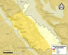 Le retrait-gonflement des sols argileux est susceptible d'engendrer des dommages importants aux bâtiments en cas d’alternance de périodes de sécheresse et de pluie[29]. 68 % de la superficie communale est en aléa moyen ou fort (59 % au niveau départemental et 48,5 % au niveau national)[Carte 3]. Depuis le , en application de la loi ELAN, différentes contraintes s'imposent aux vendeurs, maîtres d'ouvrages ou constructeurs de biens situés dans une zone classée en aléa moyen ou fort[Note 5],[30].