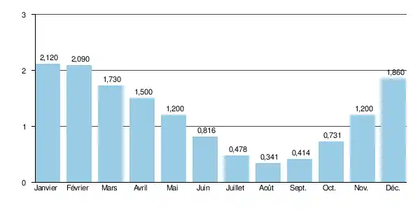 À l'étiage, le VCN3 peut chuter jusque 0,047 m3, soit 47 litres par seconde, en cas de période quinquennale sèche.