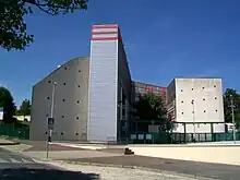 La cité Louis-Blanc ; au fond, le château et la collégiale Notre-Dame. | |||||