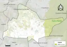 L'occupation des sols de la commune, telle qu'elle ressort de la base de données européenne d’occupation biophysique des sols Corine Land Cover (CLC), est marquée par l'importance des forêts et milieux semi-naturels (63,6 % en 2018), néanmoins en diminution par rapport à 1990 (76,1 %). La répartition détaillée en 2018 est la suivante : milieux à végétation arbustive et/ou herbacée (44,8 %), zones agricoles hétérogènes (25,1 %), forêts (18,8 %), prairies (8,8 %), terres arables (2,5 %)[13]. L'évolution de l’occupation des sols de la commune et de ses infrastructures peut être observée sur les différentes représentations cartographiques du territoire : la carte de Cassini (XVIIIe siècle), la carte d'état-major (1820-1866) et les cartes ou photos aériennes de l'IGN pour la période actuelle (1950 à aujourd'hui)[Carte 1].
