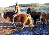 Monter avec les orteils vers le bas peut conduire à se cramponner à cheval avec les jambes, ou à creuser dans les côtes du cheval avec les talons, ce qui est souvent interprété par le cheval comme une demande pour aller plus vite[3].