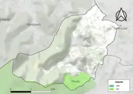 L'occupation des sols de la commune, telle qu'elle ressort de la base de données européenne d’occupation biophysique des sols Corine Land Cover (CLC), est marquée par l'importance des forêts et milieux semi-naturels (64,5 % en 2018), une proportion identique à celle de 1990 (64,5 %). La répartition détaillée en 2018 est la suivante : forêts (51,5 %), zones agricoles hétérogènes (20,1 %), prairies (15,5 %), milieux à végétation arbustive et/ou herbacée (13 %)[33]. L'évolution de l’occupation des sols de la commune et de ses infrastructures peut être observée sur les différentes représentations cartographiques du territoire : la carte de Cassini (XVIIIe siècle), la carte d'état-major (1820-1866) et les cartes ou photos aériennes de l'IGN pour la période actuelle (1950 à aujourd'hui)[Carte 1].