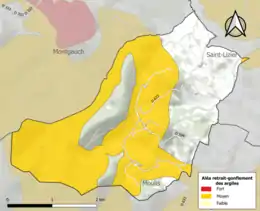 Les mouvements de terrains susceptibles de se produire sur la commune sont soit des chutes de blocs, soit des glissements de terrains, soit des effondrements liés à des cavités souterraines, soit des mouvements liés au retrait-gonflement des argiles. Près de 50 % de la superficie du département est concernée par l'aléa retrait-gonflement des argiles, dont la commune de Montégut-en-Couserans[37]. L'inventaire national des cavités souterraines permet par ailleurs de localiser celles situées sur la commune[38].