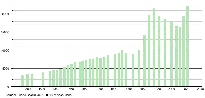 22 259 hab. (2021 en augmentation de 17,95 % par rapport à 2015)
