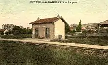 Du au jusqu'au , Montgé était raccordé au réseau ferroviaire par la ligne à écartement métrique du Tramway de Meaux à Dammartin, et disposait d'une gare avec bâtiment voyageurs, voie d'évitement et voie de garage. Au début, le trafic se développa favorablement, si bien que la desserte avait pu être portée de trois à quatre allers-retours quotidiens en 1913, mais avec la Première Guerre mondiale, la réduction à un unique aller-retour fut inévitable. L'exploitation ne s'en rattrapa pas facilement et le réseau fut mis sous séquestre en 1921, situation qui dura jusqu'en janvier 1931 quand l'affermage à la Compagnie de chemins de fer départementaux (CFD) devint effectif. Dès la fin des années 1920, la desserte s'était normalisée, et la CFD remplaça la plupart des trains par des autorails en 1934. Le temps de voyage était de une heure et dix minutes pour Meaux, et de dix-sept minutes pour la gare SNCF de Dammartin. Cependant, le nombre de voyageurs continua de diminuer, les lignes d'autocars attirant de plus en plus de clientèle. De ce fait, la CFD obtint la fermeture au service public à titre d'essai à partir du , le service de voyageurs étant entièrement reporté sur la route. Un service de marchandises saisonnier fut maintenu jusqu'en 1958 entre Saint-Soupplets et la gare de Meaux pour le transport de betteraves, assuré par la sucrerie de Villenoy[31].