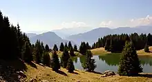 - Le lac de la Grande Léchère (inaccessible l'hiver lorsque la route est enneigée) sur le chemin de la Mère de l'Eau ;