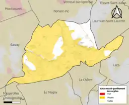 Le retrait-gonflement des sols argileux est susceptible d'engendrer des dommages importants aux bâtiments en cas d’alternance de périodes de sécheresse et de pluie. 79,5 % de la superficie communale est en aléa moyen ou fort (84,7 % au niveau départemental et 48,5 % au niveau national). Sur les 954 bâtiments dénombrés sur la commune en 2019, 760 sont en aléa moyen ou fort, soit 80 %, à comparer aux 86 % au niveau départemental et 54 % au niveau national. Une cartographie de l'exposition du territoire national au retrait gonflement des sols argileux est disponible sur le site du BRGM[28],[29].