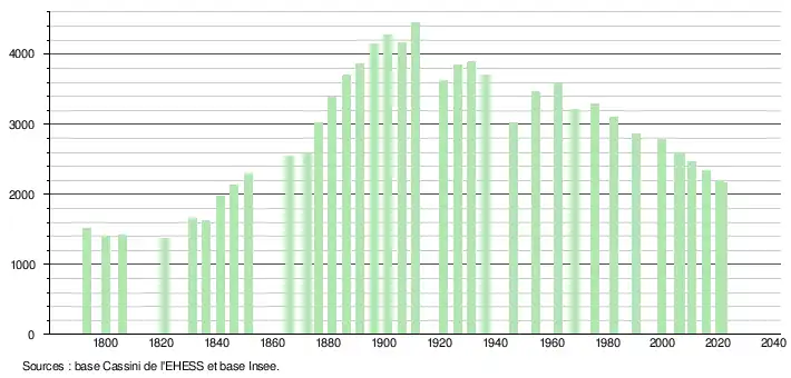 2 170 hab. (2021 en diminution de 7,38 % par rapport à 2015)