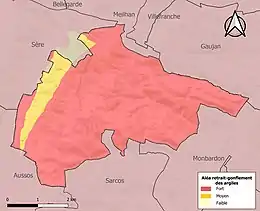 Le retrait-gonflement des sols argileux est susceptible d'engendrer des dommages importants aux bâtiments en cas d’alternance de périodes de sécheresse et de pluie. La totalité de la commune est en aléa moyen ou fort (94,5 % au niveau départemental et 48,5 % au niveau national). Sur les 55 bâtiments dénombrés sur la commune en 2019, 55 sont en aléa moyen ou fort, soit 100 %, à comparer aux 93 % au niveau départemental et 54 % au niveau national. Une cartographie de l'exposition du territoire national au retrait gonflement des sols argileux est disponible sur le site du BRGM[23],[Carte 3].