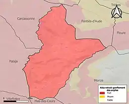 Le retrait-gonflement des sols argileux est susceptible d'engendrer des dommages importants aux bâtiments en cas d’alternance de périodes de sécheresse et de pluie. La totalité de la commune est en aléa moyen ou fort (75,2 % au niveau départemental et 48,5 % au niveau national). Sur les 50 bâtiments dénombrés sur la commune en 2019, 50 sont en aléa moyen ou fort, soit 100 %, à comparer aux 94 % au niveau départemental et 54 % au niveau national. Une cartographie de l'exposition du territoire national au retrait gonflement des sols argileux est disponible sur le site du BRGM[22],[Carte 3].