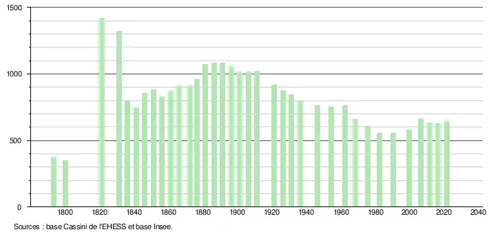 - Fiches Insee - Populations légales de la commune pour les années 2006, 2007, 2008, 2009, 2010, 2011, 2012, 2013, 2014, 2015, 2016, 2017, 2018, 2019, 2020 et 2021.