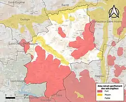 Le retrait-gonflement des sols argileux est susceptible d'engendrer des dommages importants aux bâtiments en cas d’alternance de périodes de sécheresse et de pluie. 58,1 % de la superficie communale est en aléa moyen ou fort (67,4 % au niveau départemental et 48,5 % au niveau national). Sur les 384 bâtiments dénombrés sur la commune en 2019, 180 sont en aléa moyen ou fort, soit 47 %, à comparer aux 81 % au niveau départemental et 54 % au niveau national. Une cartographie de l'exposition du territoire national au retrait gonflement des sols argileux est disponible sur le site du BRGM[9],[10].